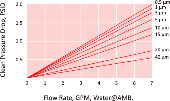 流量以10"濾心為單位計算。對於非水流體,用表中壓差值乘以釐泊(cP)為單位的流體黏度值。