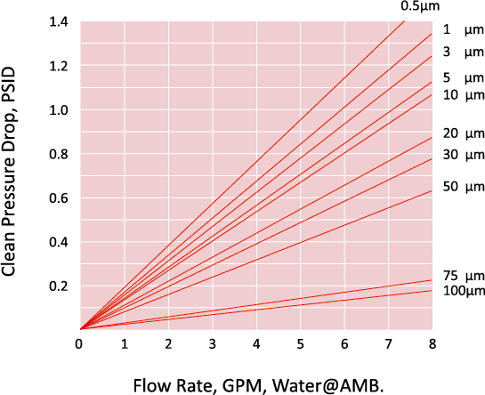 流量以10"濾心為單位計算。對於非水流體,用表中壓差值乘以釐泊(cP)為單位的流體黏度值。